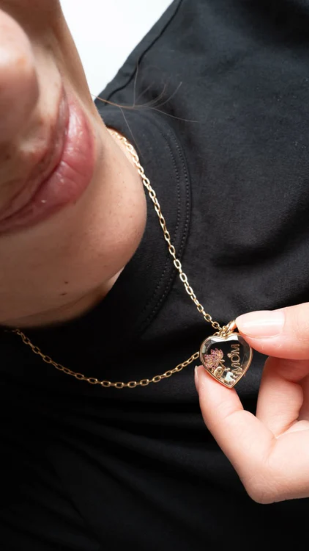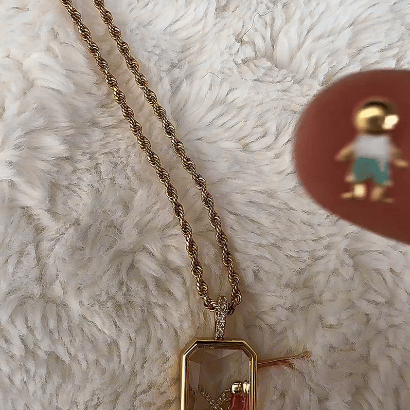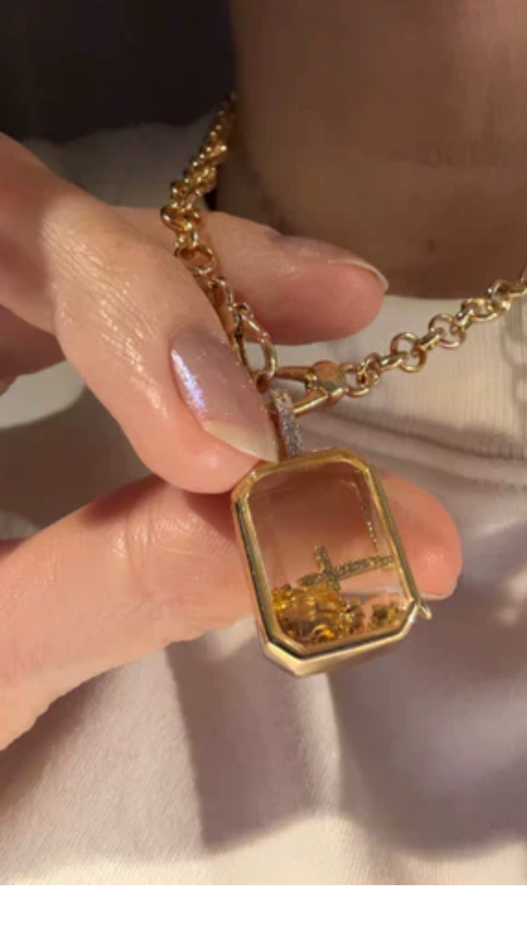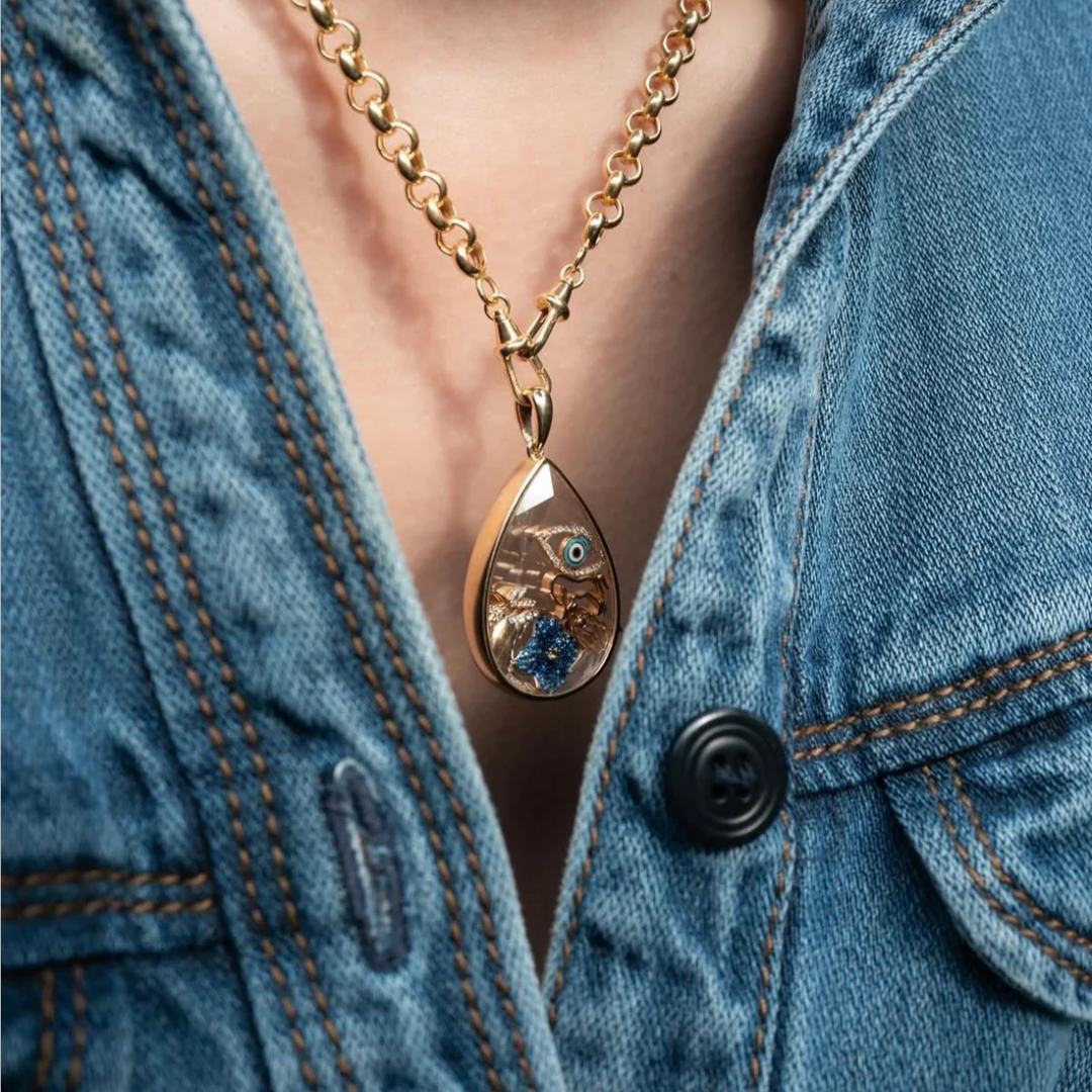 Nuestros relicarios y colgantes están elaborados en acero inoxidable con acabado dorado PVD y vienen con una cadena de 18 pulgadas (45 cm).